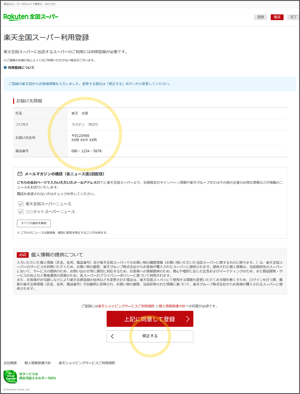 ご利用開始時に「楽天会員登録」と「楽天全国スーパー利用登録」が必要となります。