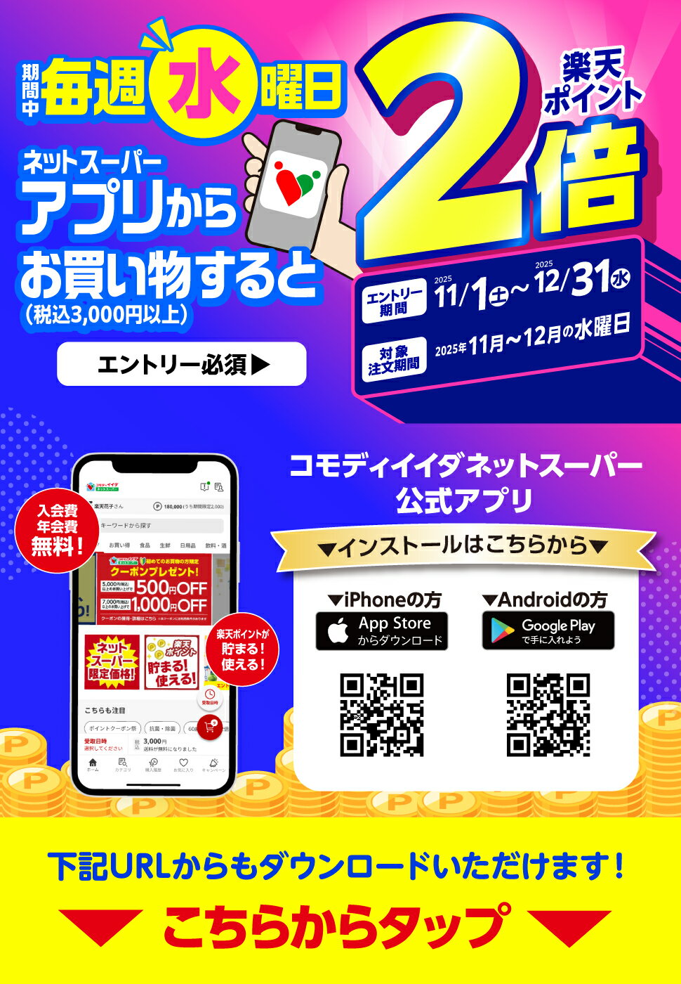 | 毎週水曜日にネットスーパーアプリでお買い物をするとポイント2倍! | ||